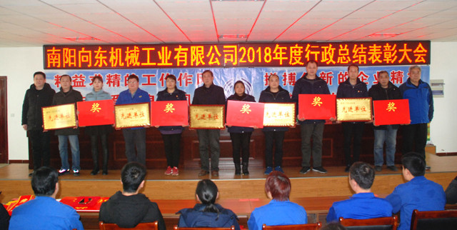 ? ? 監(jiān)事會主席王漢臣宣讀了《關(guān)于表彰2018年度先進集體和先進個人的決定》。南陽向東機械工程有限公司榮獲“紅旗單位”稱號;河南向東機電設(shè)備有限公司、產(chǎn)品開發(fā)與技術(shù)質(zhì)量部等五個單位榮獲 “先進單位”稱號;李天波同志榮獲“勞動模范”稱號;李德清、李國紅等18同志榮獲“先進生產(chǎn)(工作)者”稱號;袁華、王軍等六名同志榮獲“優(yōu)秀中層經(jīng)營管理者”稱號。大會對獲獎單位和先進個人進行了頒獎。