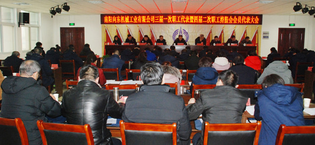 ? ? 2月17日,南陽(yáng)向東機(jī)械工業(yè)有限公司三屆一次職工代表暨四屆二次職工持股會(huì)會(huì)員代表大會(huì)在向東工業(yè)園隆重召開(kāi)。大會(huì)主席團(tuán)成員喬新濤、姜華、王漢臣、郭方、丁玨、王友志、劉全義、高偉、王振華在主席臺(tái)就坐。會(huì)議由大會(huì)主席團(tuán)秘書(shū)長(zhǎng)王友志主持。