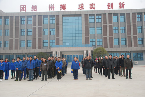 董事長朱超英、總經(jīng)理喬新濤、黨委書記姜華、副總經(jīng)理王漢臣、李杰明等領(lǐng)導(dǎo)以及來自機(jī)電公司、工程公司、精鑄公司的全體職工參加了升旗儀式。