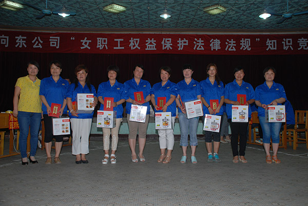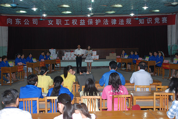 為推動(dòng)?jì)D女權(quán)益保護(hù)法律法規(guī)知識(shí)的學(xué)習(xí)普及,努力提高女工的法律意識(shí)和自我保護(hù)意識(shí)。7月29日晚,公司工會(huì)女工委在文化宮二樓會(huì)議廳舉辦了“女職工權(quán)益保護(hù)知識(shí)”答題競(jìng)賽。南陽(yáng)向東公司黨委書記姜華、北方向東公司總經(jīng)理助理趙天波、公司工會(huì)副主席王友志女工主任丁玲、南陽(yáng)向東公司黨群工作部副部長(zhǎng)吳維芳,公司各基層分工會(huì)主席和部分女工代表觀看了比賽。