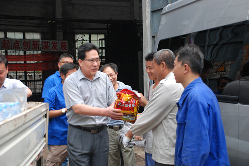 ???這次送清涼活動(dòng),充分體現(xiàn)了上級(jí)工會(huì)組織對(duì)向東公司生產(chǎn)一線職工的關(guān)愛。每到一處李海波主任都詳細(xì)詢問職工的生活和工作情況,叮囑他們要在天氣炎熱的條件下,要注重防暑降溫,,確保身體健康和安全生產(chǎn)。