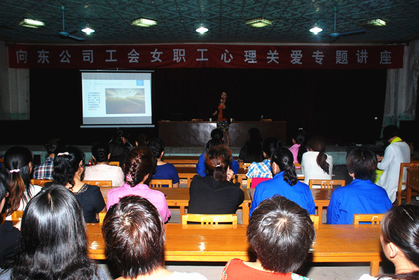 ???????????? 為切實(shí)增強(qiáng)女職工心理保健素質(zhì),引導(dǎo)女職工面對工作和家庭雙重角色帶來的壓力,并學(xué)會(huì)正確地進(jìn)行心理調(diào)節(jié)及緩解心理壓力,保持健康的心理狀態(tài)。9月17日晚,公司工會(huì)特邀請南陽市金陽光職業(yè)培訓(xùn)學(xué)校校長、國家二級心理咨詢師李明明,北大心理系在職研究生、三級心理咨詢師陳玉敏,為公司的100余名女工送上了一堂精彩的心理健康知識(shí)講座。